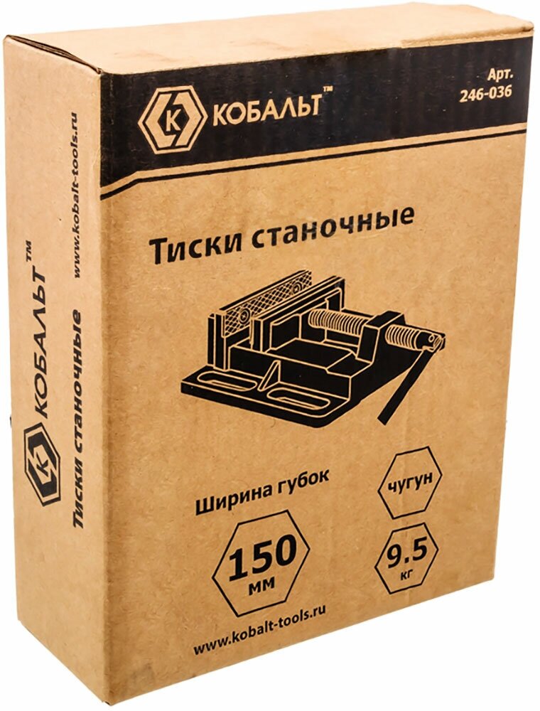 Тиски станочные кобальт ширина губок 150 мм, 9.5 кг, коробка (ширина губок 150 мм, 9.5 кг, коробка)