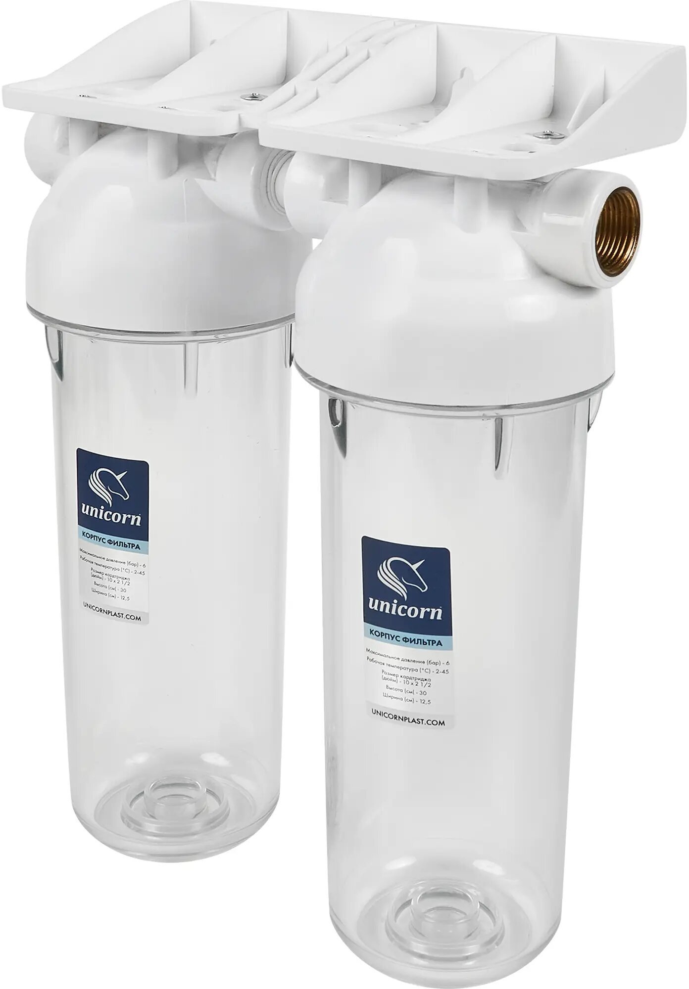 Магистральный фильтр Unicorn 3/4' Ksbp DUO двойной, для холодной воды, прозрачный 10" 548621 . информация: