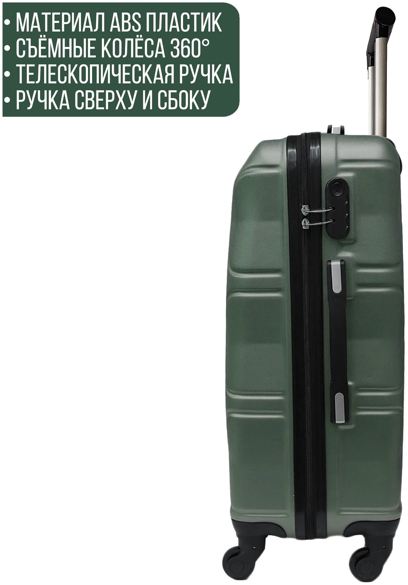 Чемодан небольшой, Размер (S+), 50 л, кодовый замок. Цвет изумрудный информация: