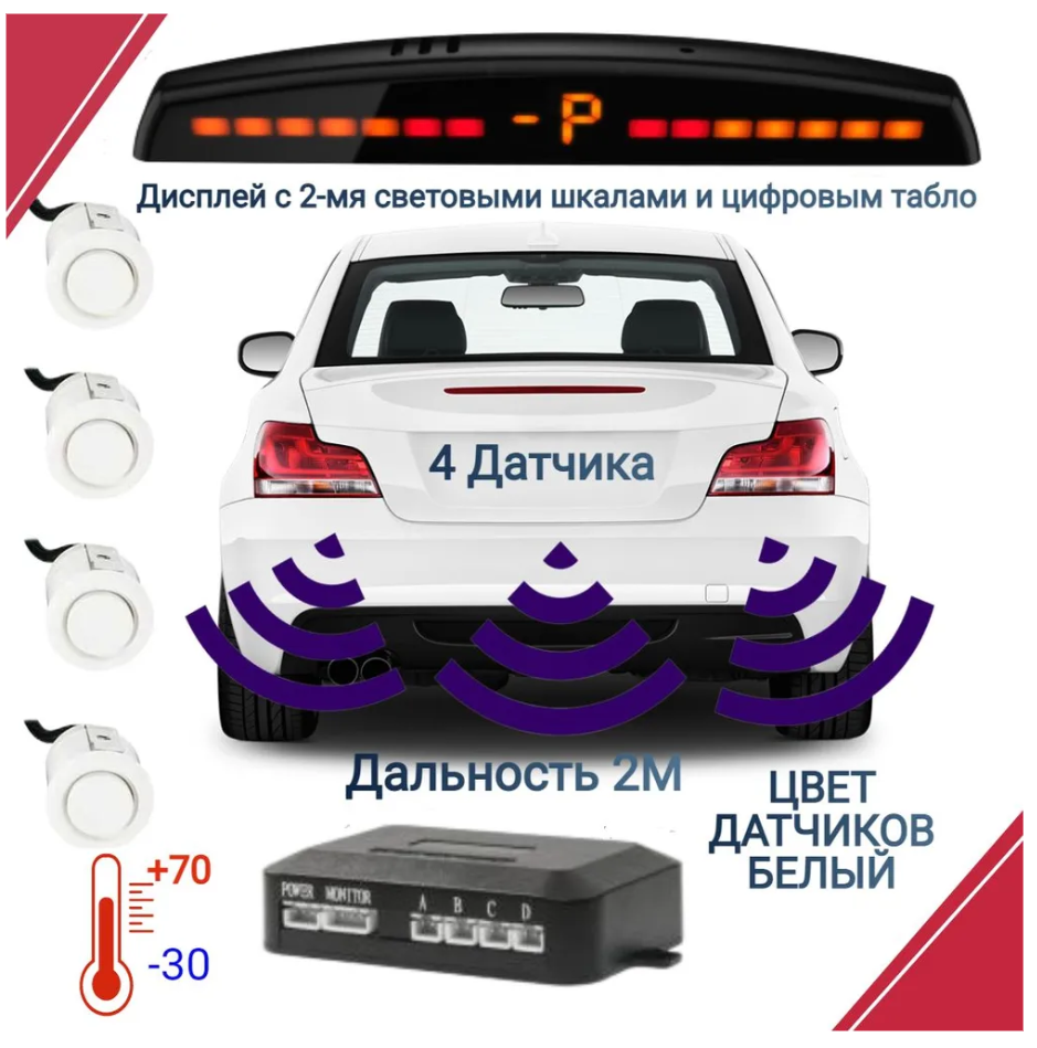 Автомобильный парктроник Eplutus ED-114 на 4 датчика, система помощи при парковке (Белый) 1 330 ₽