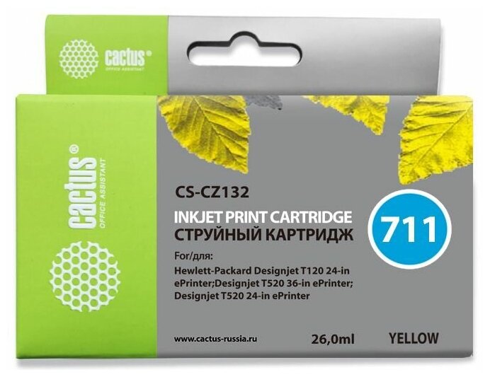 Cartridge ink Cactus CS-CZ132 №711 yellow (26ml) for HP DJ T120/T520 информация: