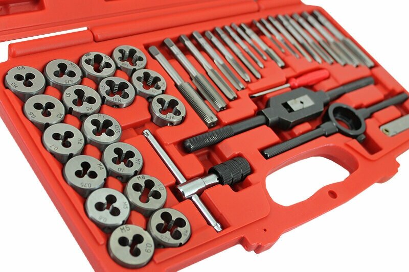 | Подробная комплектация | - метчики: M3x0.5, M3x0.6, M4x0.7, M4x0.75, M5x0.8, M5x0.9, M6x0.75, M6x1.0, M7x0.75, M7x1.0, M8x1.0, M8x1.25, M10x1.25, M10x1.5, M12x1.25, M12x1.5, 1/8NPT27; -плашки: M3x0.5, M3x0.6, M4x0.7, M4x0.75, M5x0.8, M5x0.9, M6x0.75, M6x1.0, M7x0.75, M7x1.0, M8x1.0, M8x1.25, M10x1.25, M10x1.5, M12x1.25, M12x1.5, 1/8NPT27; - ключ для метчиков (М3-М12) ; - ключ для метчиков с Т-образной рукояткой; - держатель для плашки 25 мм; - отвертка; - резьбомер; - пластиковый кейс. |