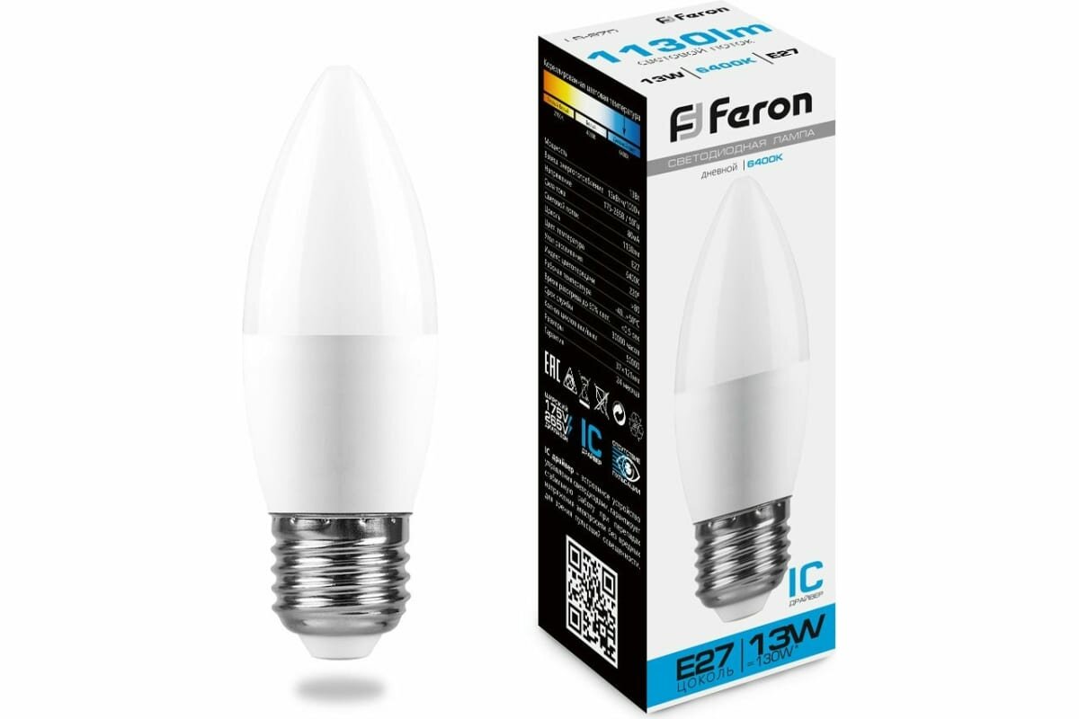 Feron свеча C37 E27 13W(1105Lm) 6400K 6K матовая 121x37 LB-970 38112 (арт. 791817) 367 ₽
