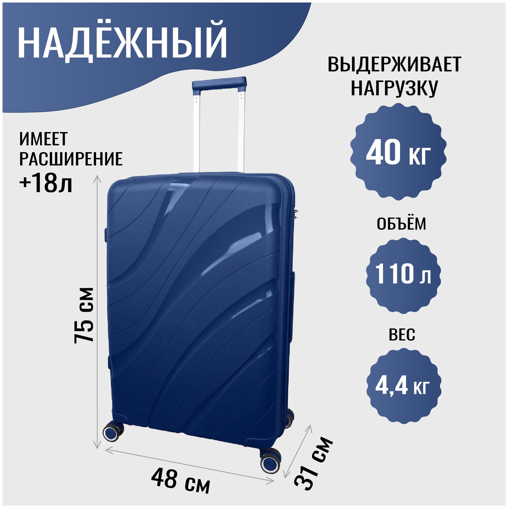 Чемодан на колесах дорожный большой семейный багаж для путешествий мужской l Тевин размер Л 73 см 105 л легкий и прочный полипропилен Синий темный 10 550 ₽