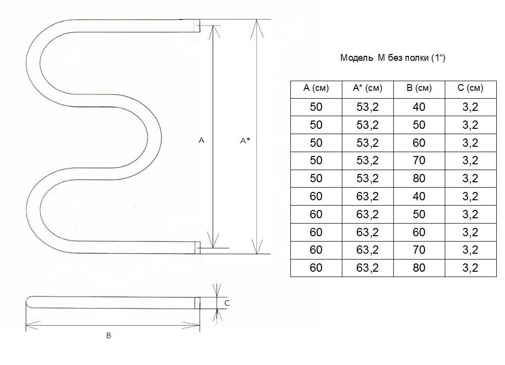 Водяной полотенцесушитель двин «M» 50/70 без полочки Полированный 1" информация: