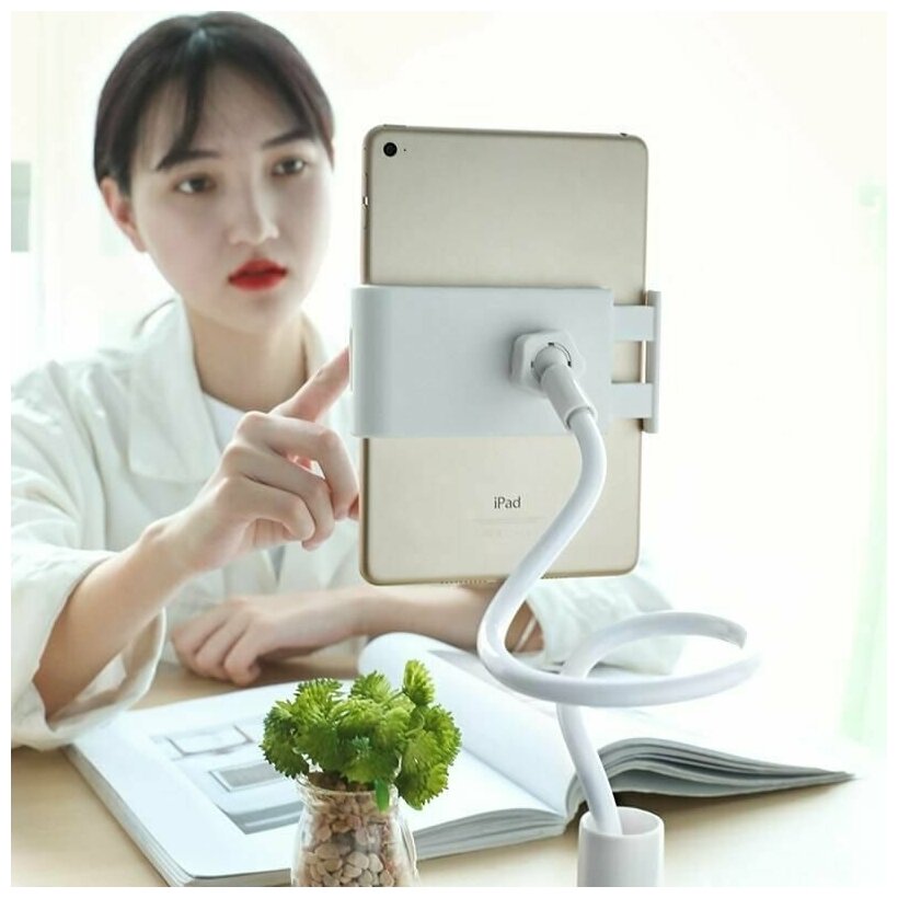 10 цен на Держатель настольный для планшета BOROFONE BH24 Bright shell зажим, гибкий, 0.7м, край стола (белый)