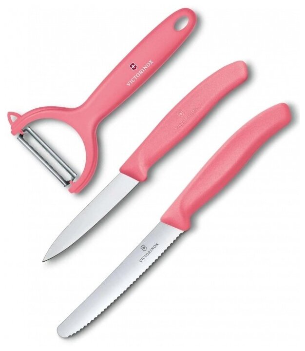 Набор из 3 ножей VICTORINOX Swiss Classic: нож для томатов, столовый нож 11 см, нож для овощей 8 см, розовый