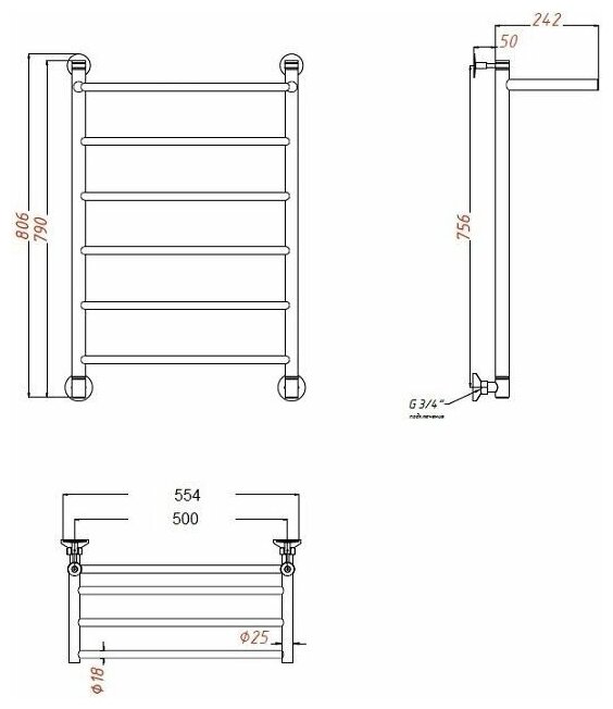 Полотенцесушитель водяной Aquanet Mauro 800x500 с полкой информация: