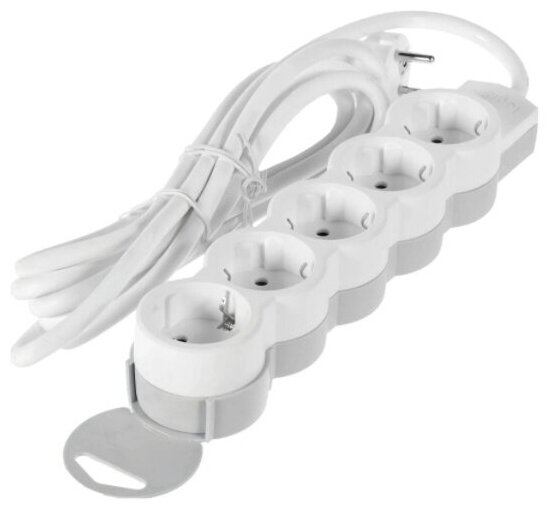 Удлинитель с заземлением Legrand 6 розеток с кабелем 5 м, цвет: бело-серый , арт. 694572