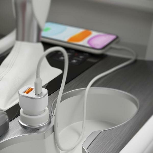 Автомобильное зарядное устройство Deppa Ultra MFI Apple Lightning, USB A + USB Type-C 18Вт, QC 3.0, Power Delivery, белое (11292) 1 890 ₽