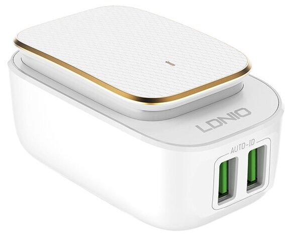 Отзывы на LDNIO LD B4372 A2205 Сетевое ЗУ + Led светил. 2.4W + Кабель Lightning 2 USB Auto-ID Выход 12W White&Gold