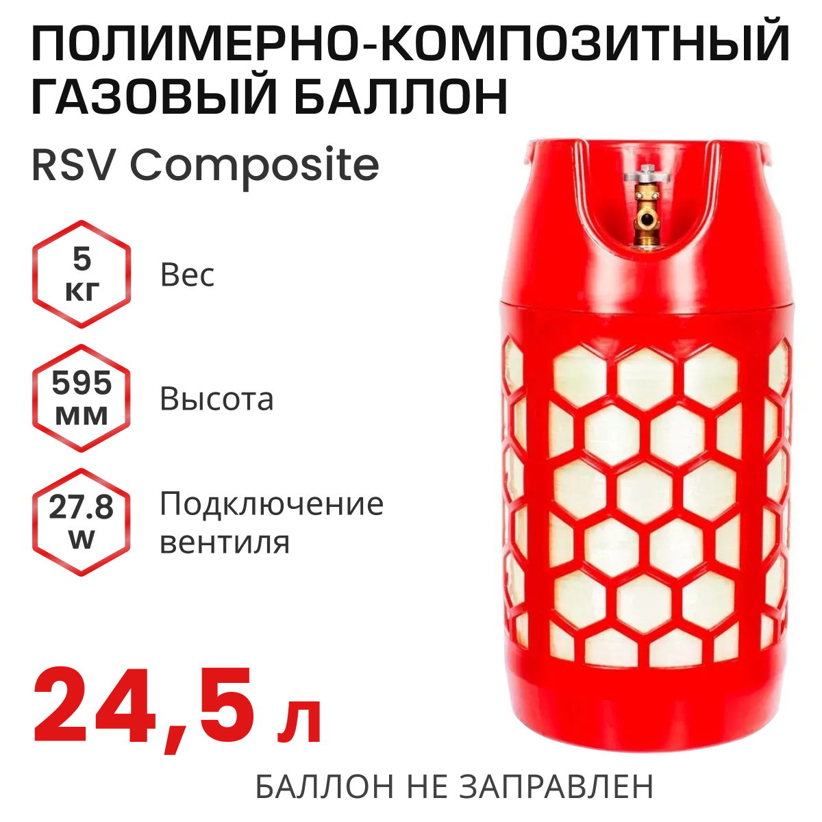 Баллон полимерно-композитный газовый, красный, 18 л (LPG/СУГ) RSV COMPOSITE RSV18RED