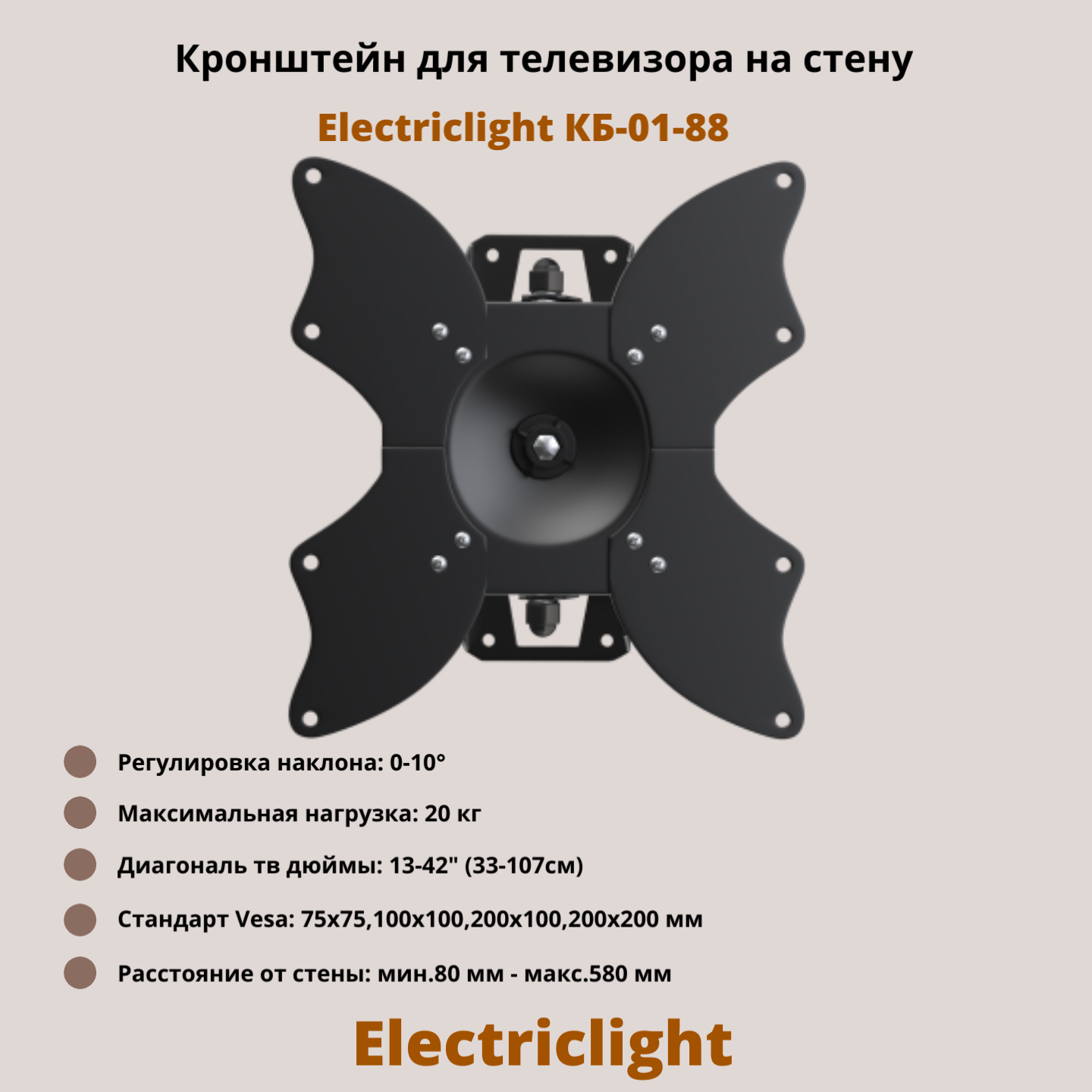 Кронштейн для телевизора на стену наклонно-поворотный с диагональю 13"-42" Electriclight КБ-01-88, черный