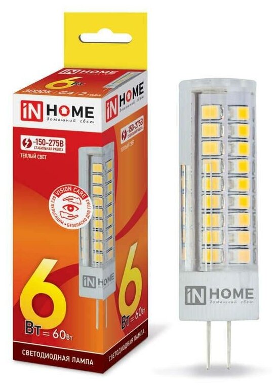 Лампа светодиодная LED-JCD-VC 6Вт 230В G4 3000К 540Лм IN HOME информация: