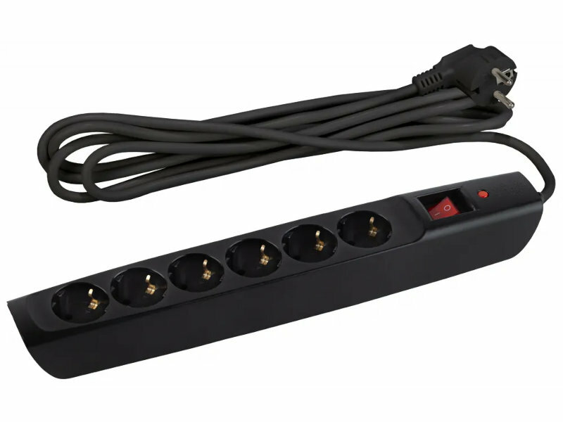 Сетевой фильтр ЭРА SFX-6es-2m-B с надежной защитой с заземлением с выключателем 6 розеток 2м 10А чер