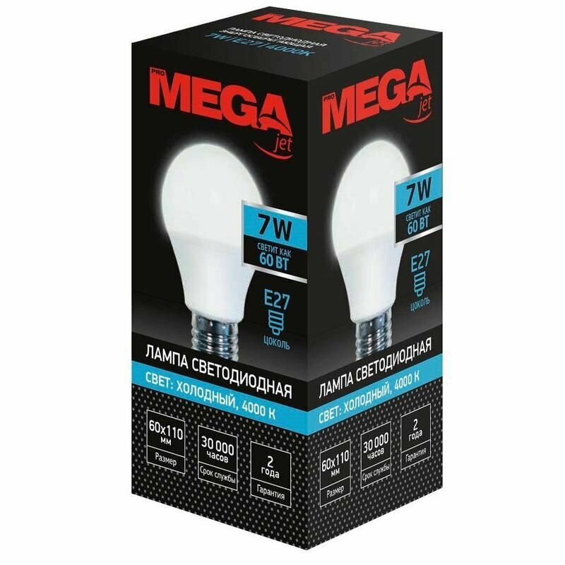 Лампа светодиодная Mega E27 7W 4000K груша информация: