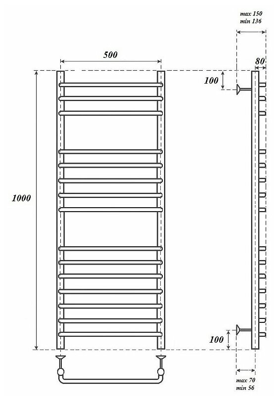 Полотенцесушитель водяной Point PN09150S П15 500x1000 информация: