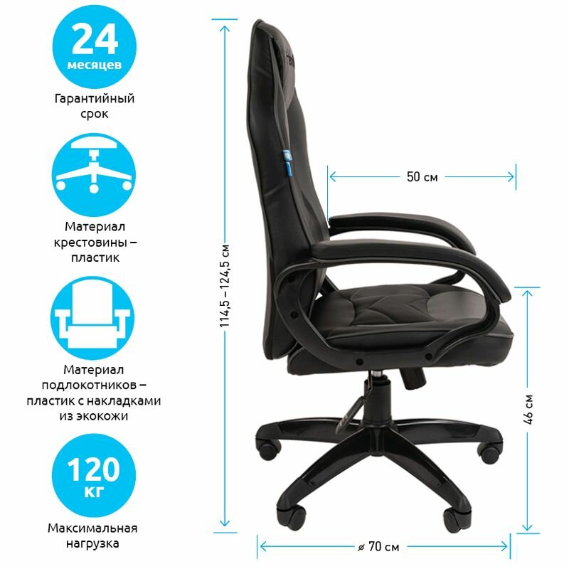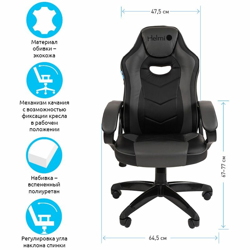 Кресло игровое Helmi HL-S15 "Skyline", экокожа, черная/серая, механизм качания информация:
