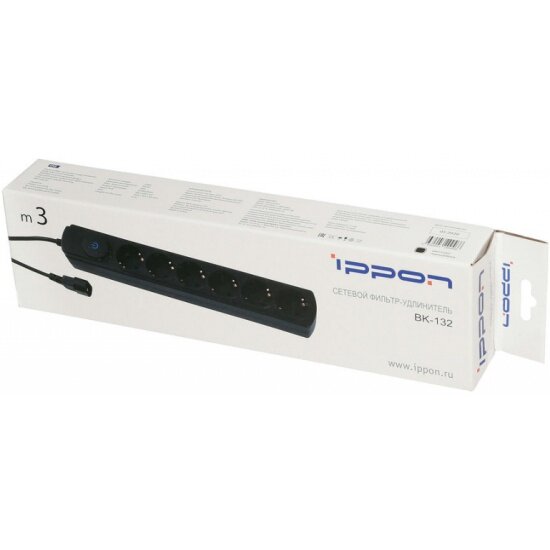 Сетевой фильтр IPPON BK132 3м (6 розеток) черный (коробка) информация: