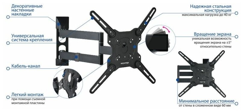 Отзывы на Кронштейн Kromax OPTIMA-406, TV 22-65, настенный, наклонно-поворотный, сер