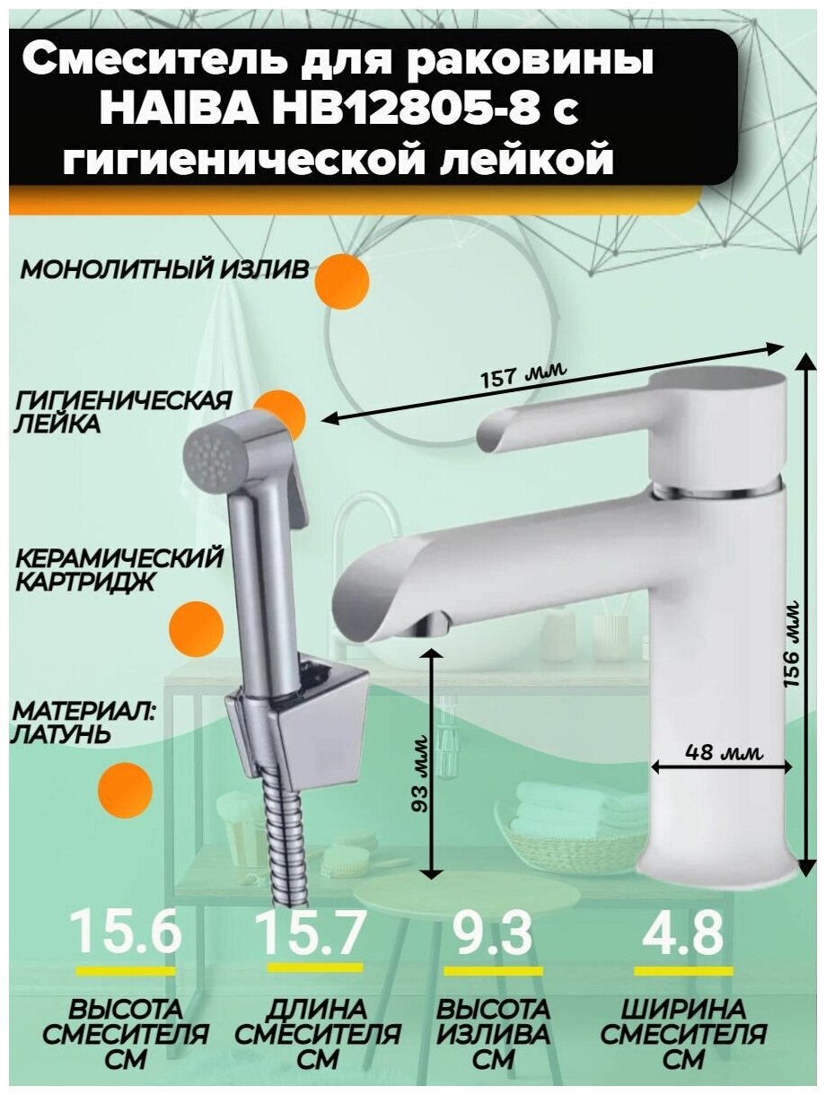 Смеситель для раковины с гигиенической лейкой HAIBA HB12805-8, белый-хром информация: