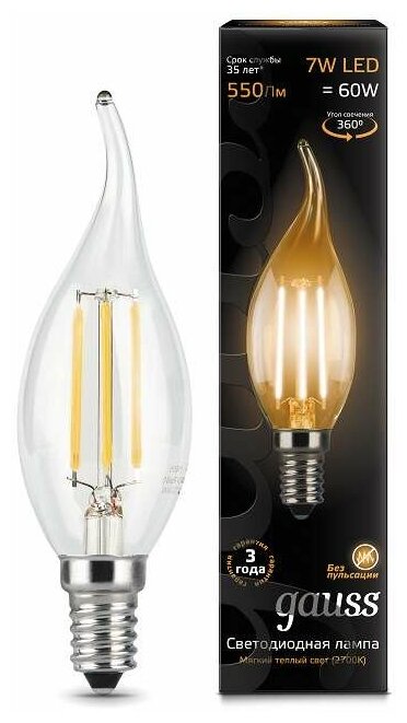 Отзывы на Лампа светодиодная филаментная Black Filament 7Вт свеча на ветру 2700К E14 Gauss GAUSS 104801107 (1 шт.)