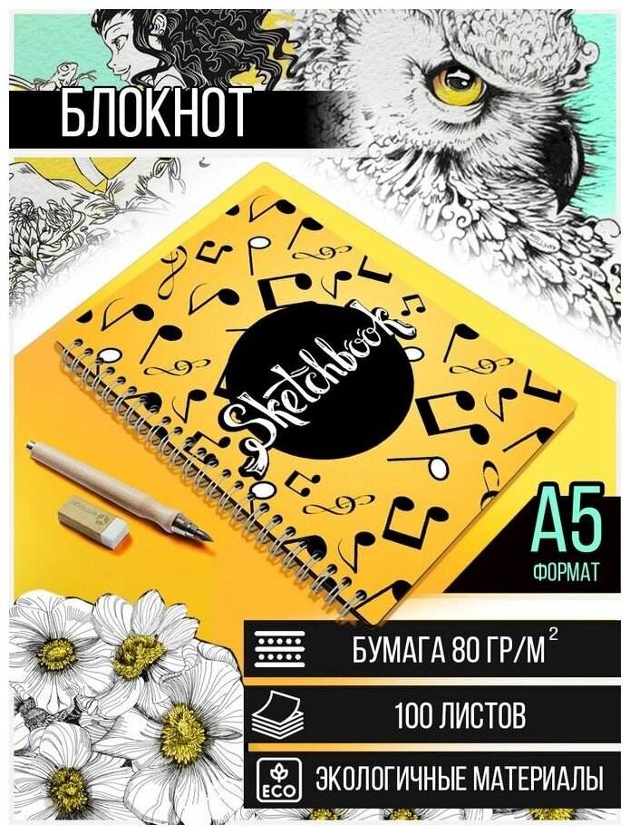 10 цен на Скетчбук, Блокнот, A5 50 листов музыка - 322