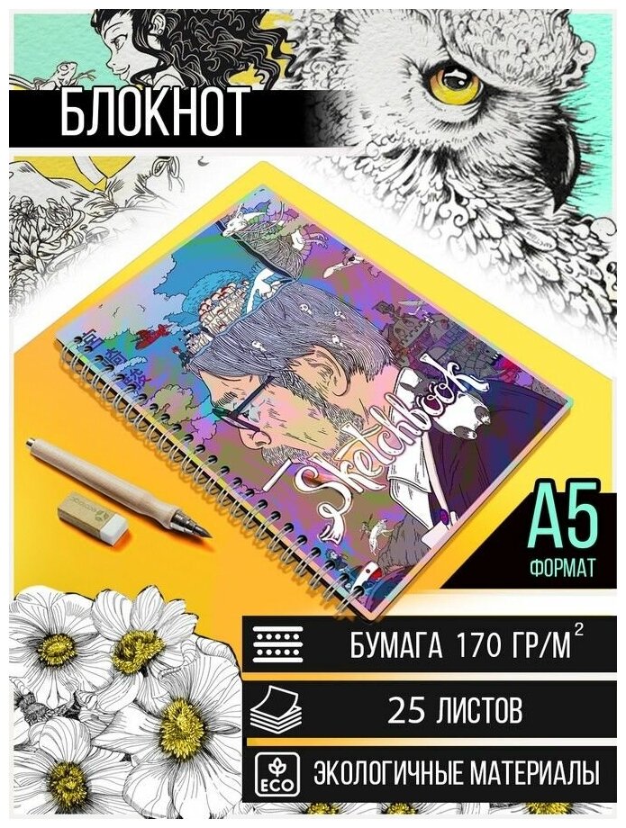 10 цен на Скетчбук, Блокнот, A5 25 листов 170гр/м2 Мир Хаяо Миядзаки - 375