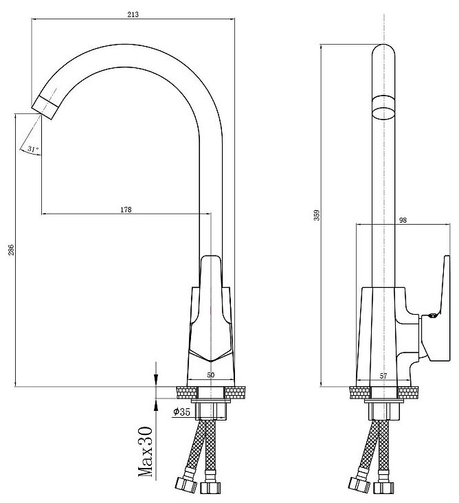 | Комплектация | Смеситель. Гибкая подводка 35 см - 2 шт. Присоединительная группа для настольного крепления. Металлическая рукоятка. |