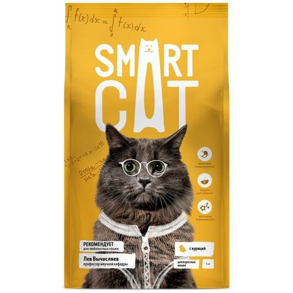 10 цен на Smart Cat - Сухой корм для взрослых кошек, с курицей 5 кг