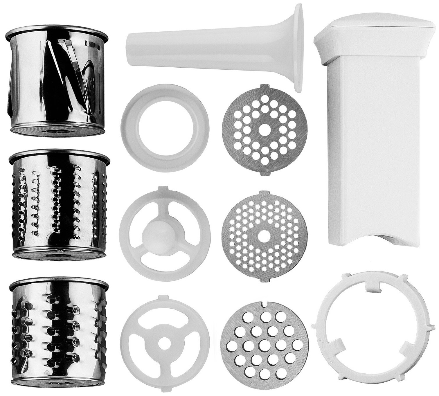 | Дополнительная информация | материал лотка: металл; количество насадок для приготовления колбас: 1; количество насадок для шинковки: 3 |
