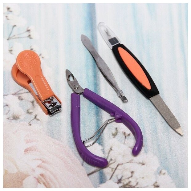 10 цен на Набор для маникюра в чехле 4шт "Manicure set", цвет микс, (кусачки 2шт, пилка, пинцет), 22*6см