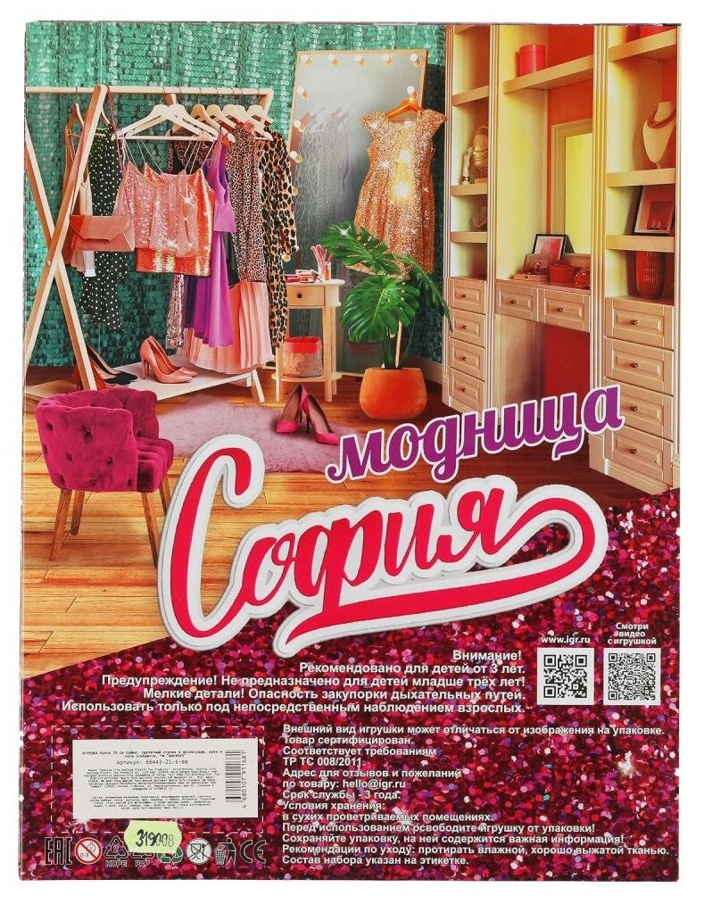 Кукла-модница софия 29 см туалетный столик, аксессуары карапуз 66443-21-S-BB