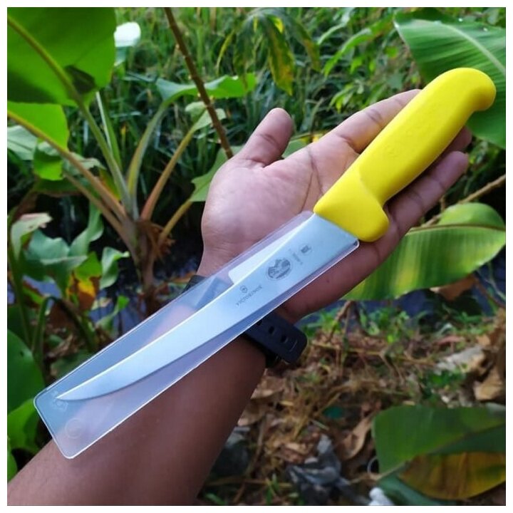 Отзывы на Нож Victorinox кухонный Fibrox (5.6608.15) стальной разделочный лезв.150мм прямая заточка желтый