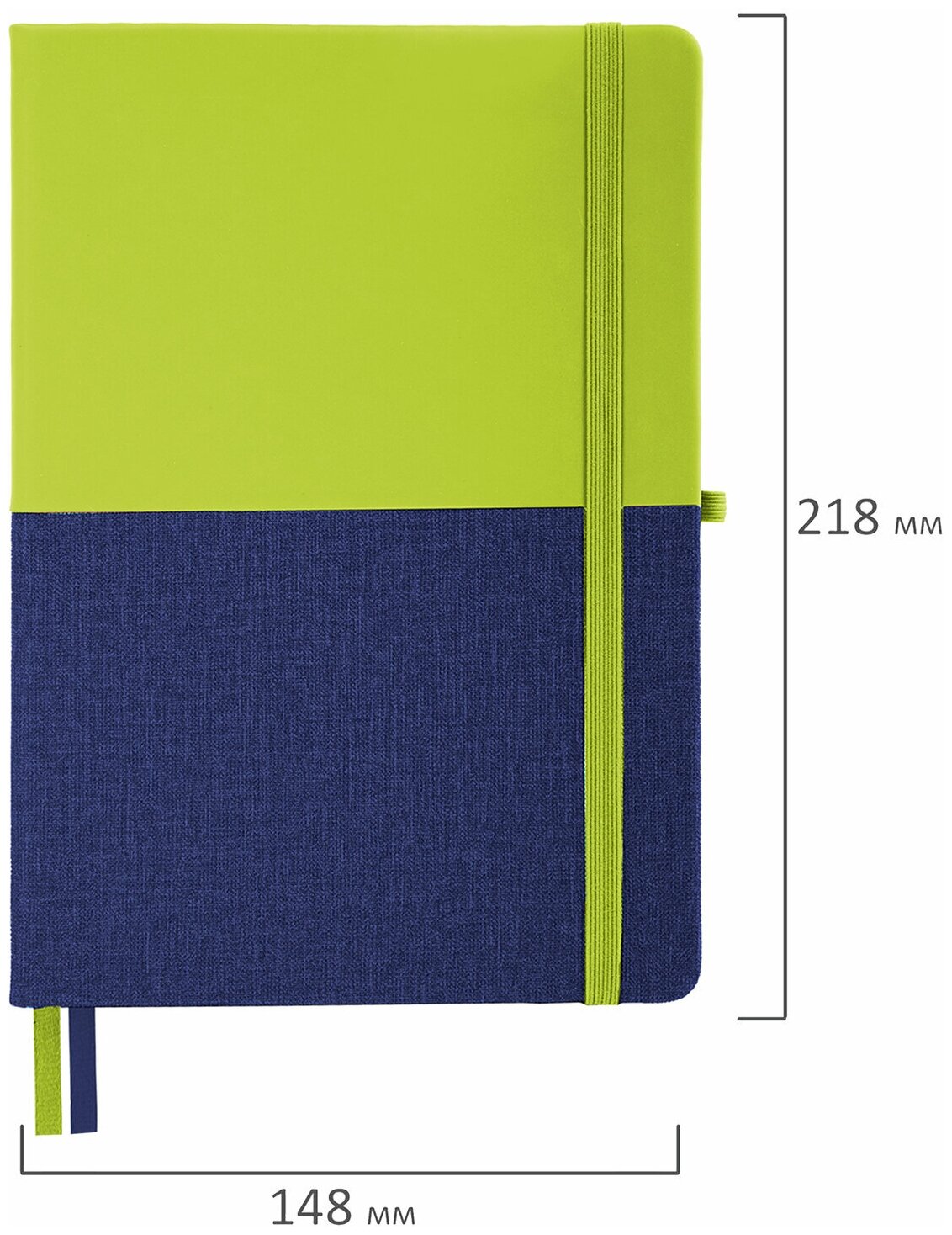 Бизнес-блокнот / записная книжка мужской / женский А5 (148х218 мм), Brauberg Duo, под кожу с резинкой, 80 листов, клетка, зеленый/фиолетовый