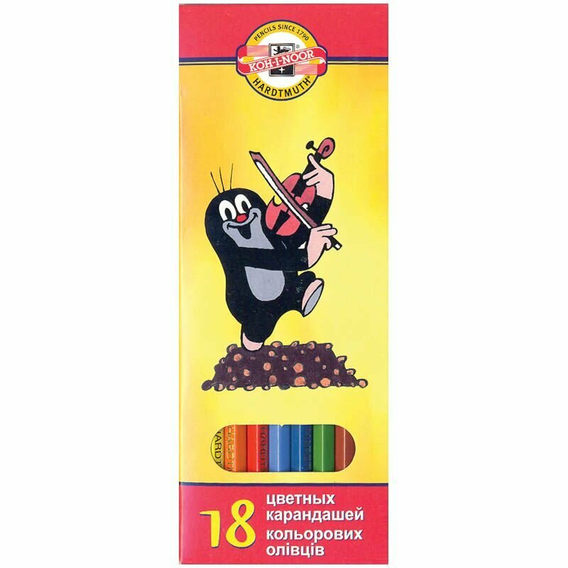 Карандаши цветные KOH-I-NOOR "Крот" 18 цветов, заточен., картон. уп., европодвес информация: