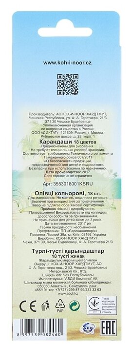 10 цен на Карандаш Koh-I-Noor Карандаши цв. BIRDS 3553 шестигран. 18цв. коробка/европод.