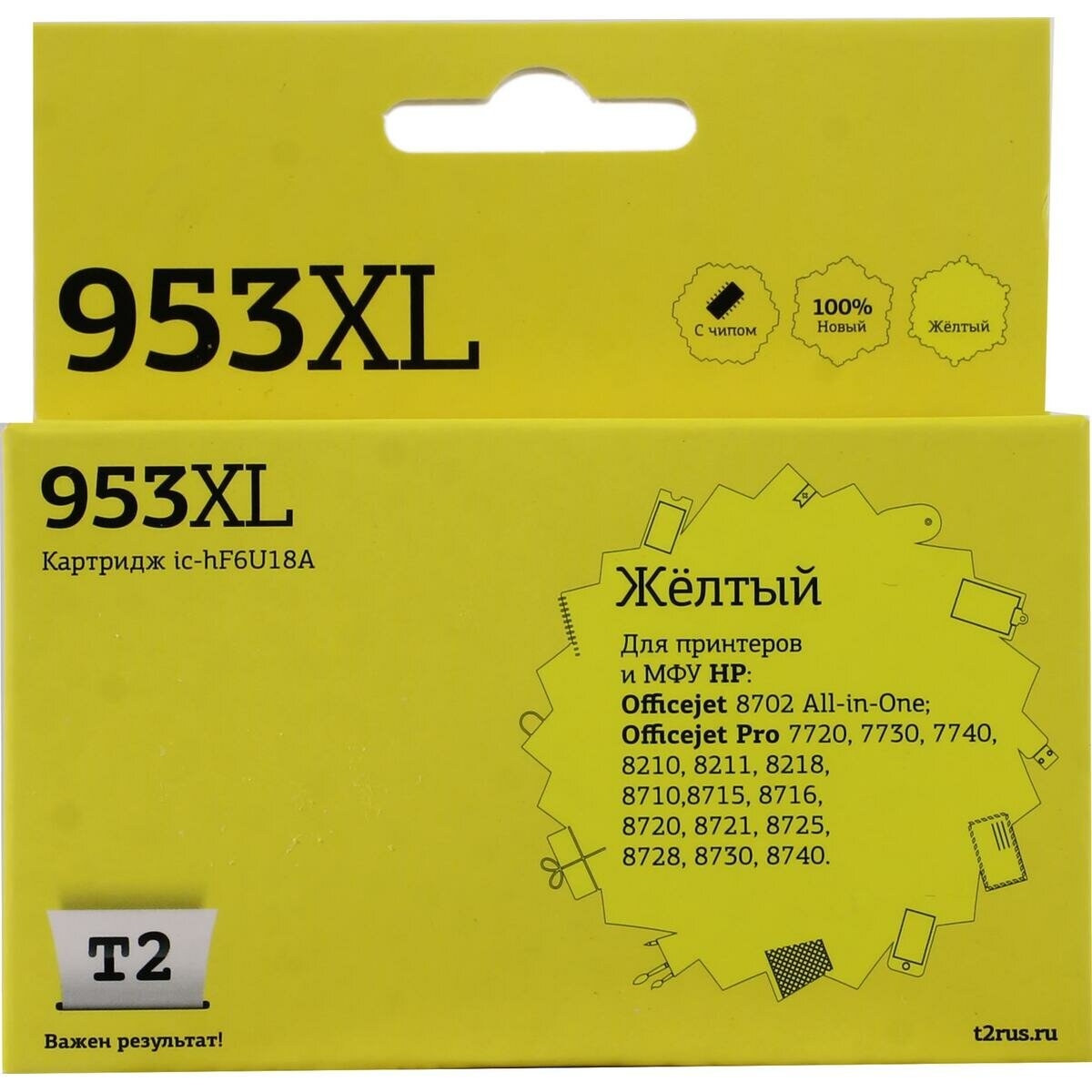 T2 F6U18AE Картридж №953XL (IC-HF6U18A) для HP OfficeJet Pro 7720/7730/7740/8210/8710/8720/8730/8740, желтый, 26 мл.