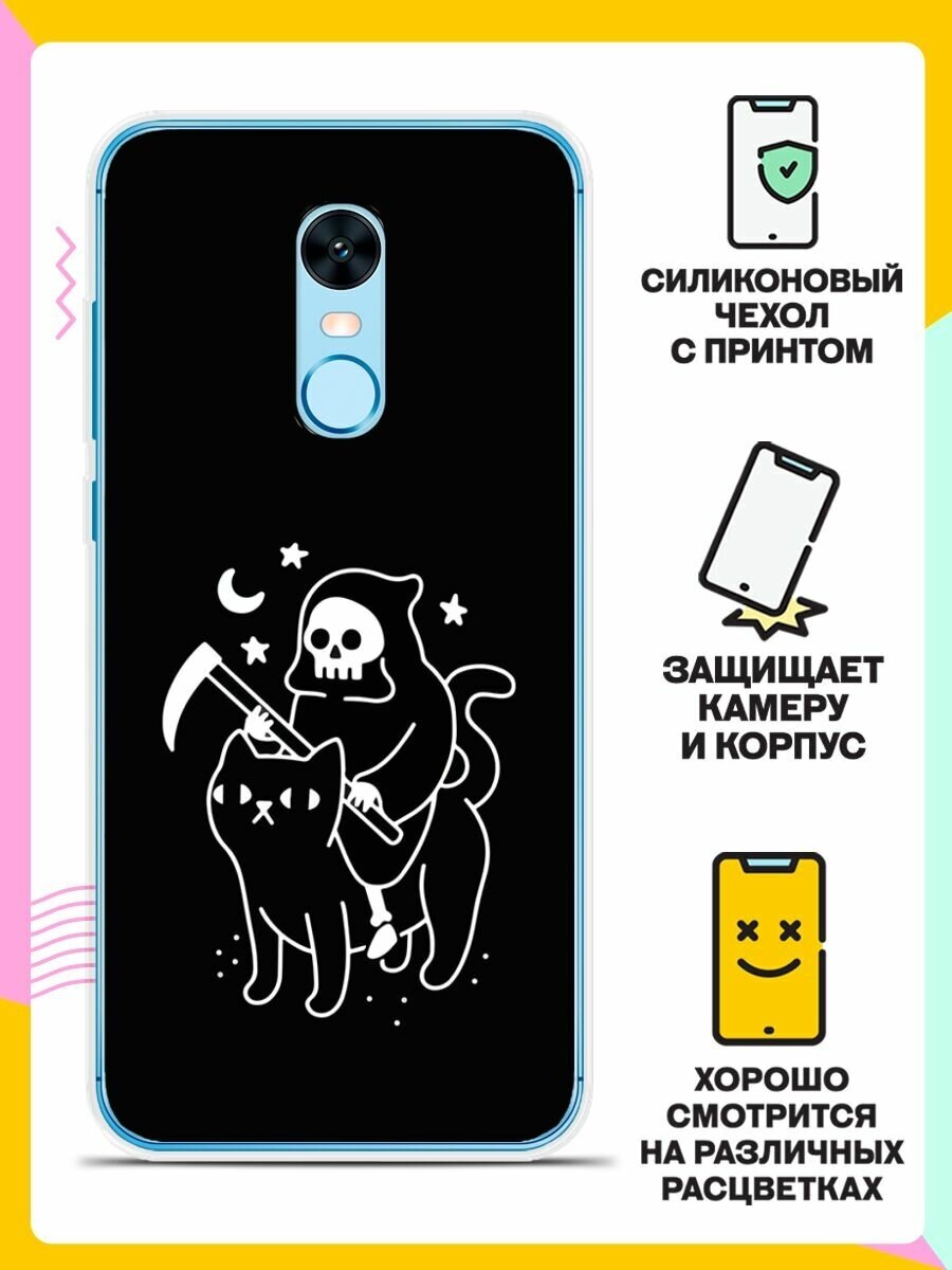 Силиконовый чехол на Xiaomi Redmi 5 Plus Череп и кот / для Сяоми Редми 5 Плюс информация: