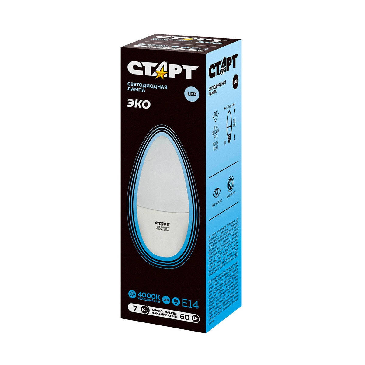 Лампа светодиодная LED Старт ECO Свеча, E14, 7 Вт, 4000 K, холодный свет информация: