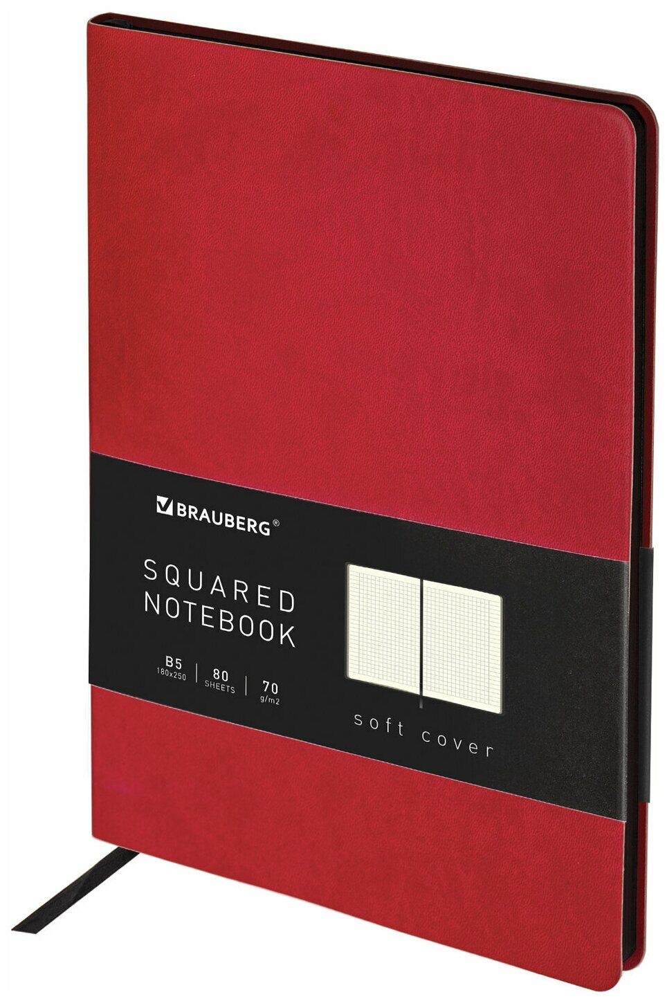 Блокнот большой формат 180х250мм B5, BRAUBERG Metropolis Mix под кожу 80л, клетка, красный, 113312 информация: