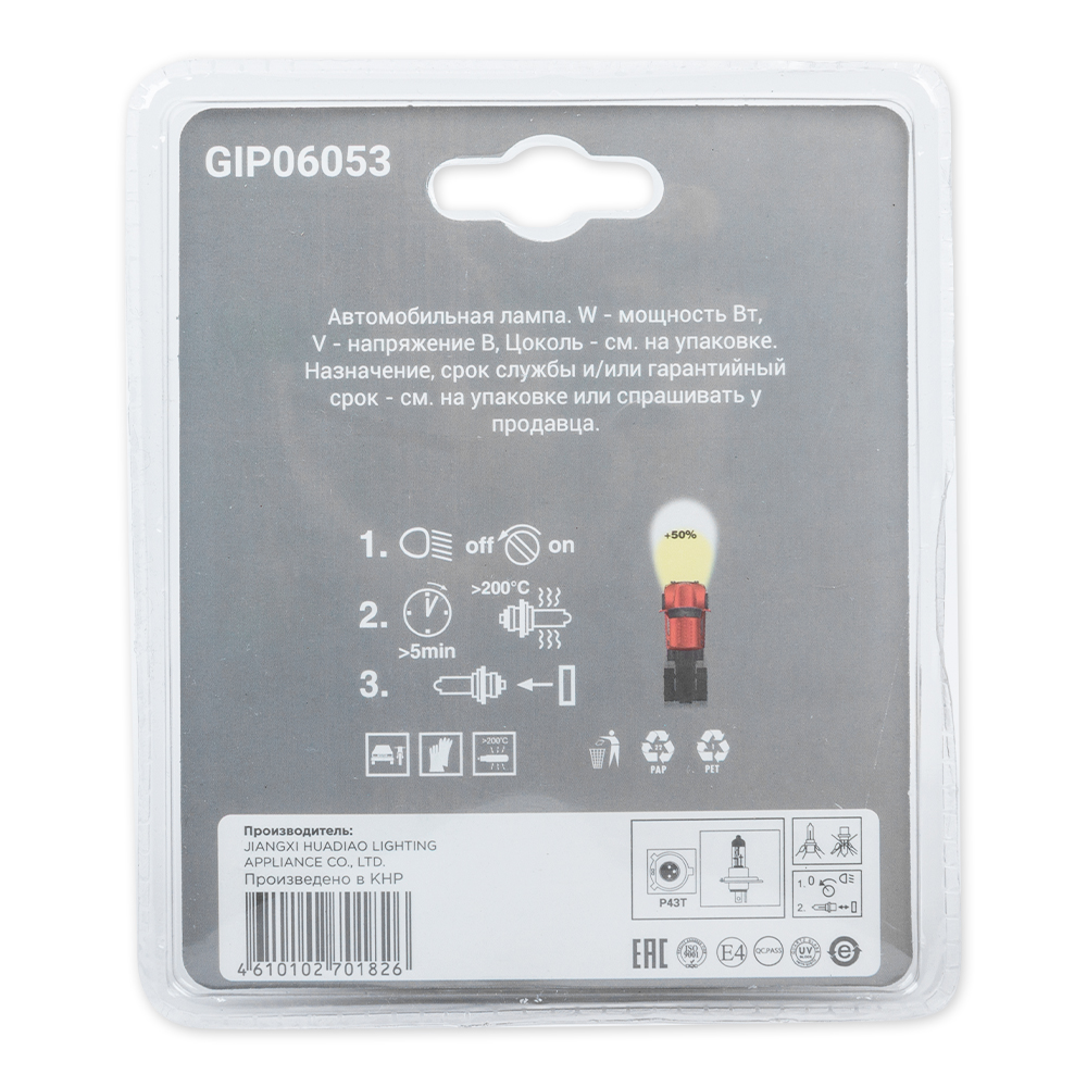 Лампа 12V H4 60/55W +50% P43t 5000K GANZ 2 шт. блистер GIP06053 информация: