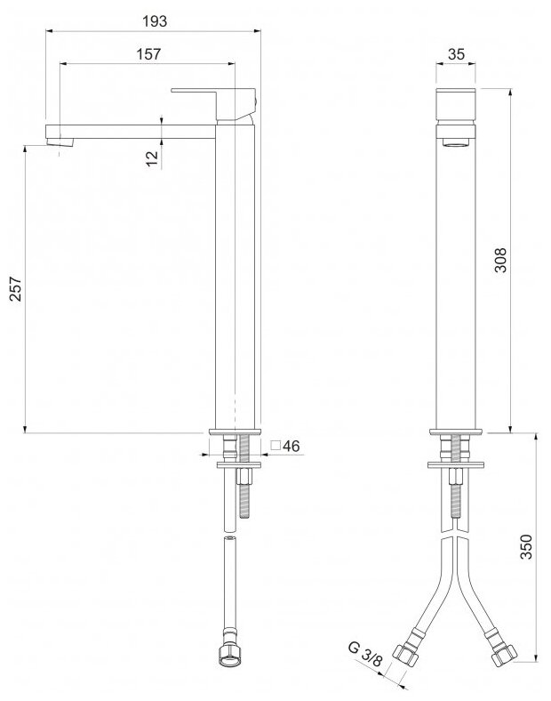 Смеситель на раковину настенный Эверест B46-350 с круглым поворотным изливом, кран-буксы 1/2", хром