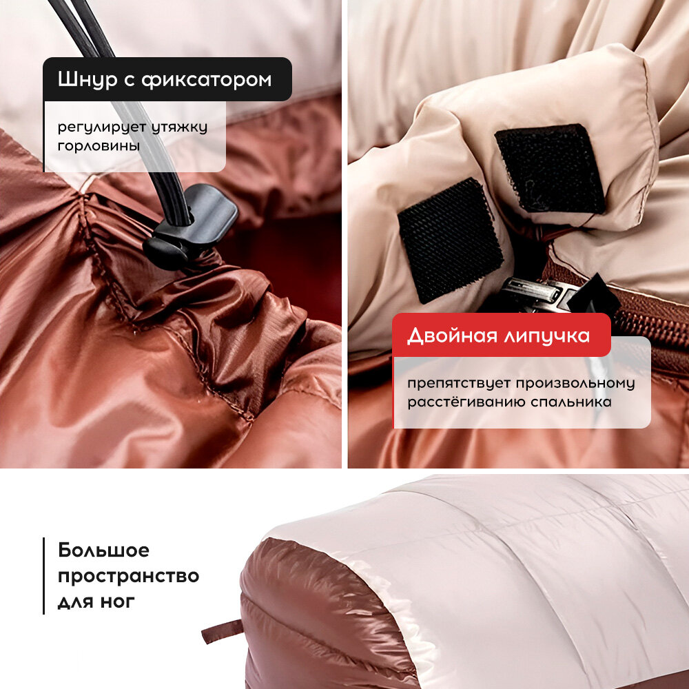 10 цен на Мешок спальный Naturehike SnowBird, 205х80 см, L (720G), (правый) (ТК: -3°C), серый/коричневый