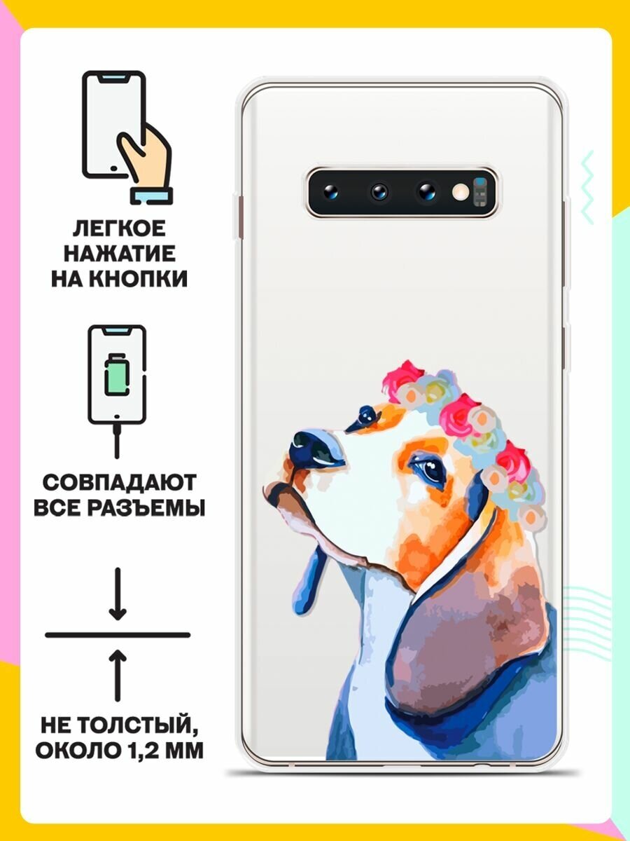 Отзывы на Силиконовый чехол на Samsung Galaxy S10+ Бигль с цветами / для Самсунг Галакси С10 Плюс