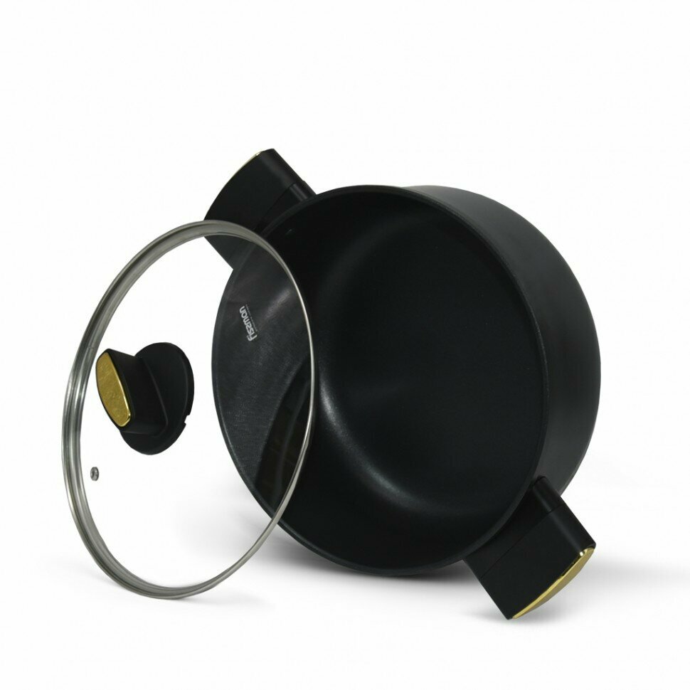 10 цен на 14489 FISSMAN Кастрюля PAULA 24x11см /4,6л с крышкой (алюминий с антипригарным покрытием TouchStone) Ручки-бакелит с покрытием «софт тач»; Крышка-стекло; Индукция