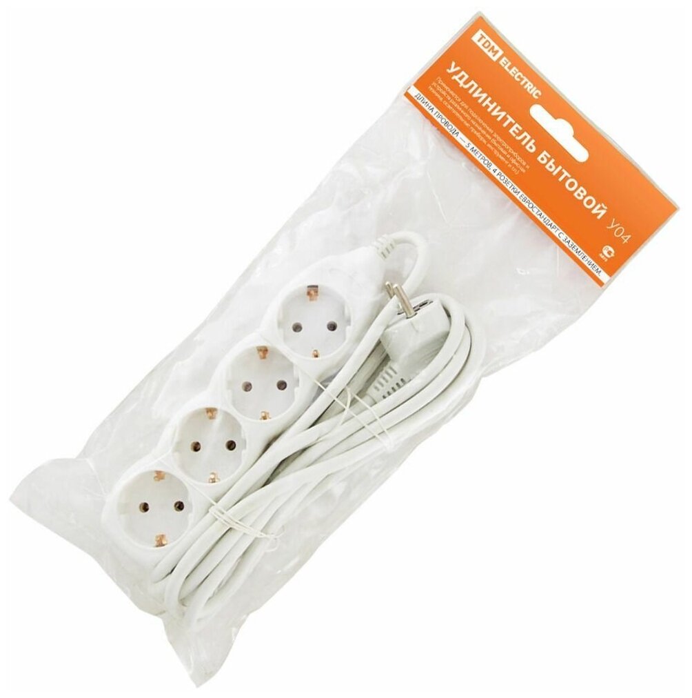 TDM Удлинители бытовые и сетевые фильтры SQ1303-0012 Удлинитель бытовой У04 4 гнезда, 5метров, с заземлением, ПВС 3х1 мм2 16А 250В