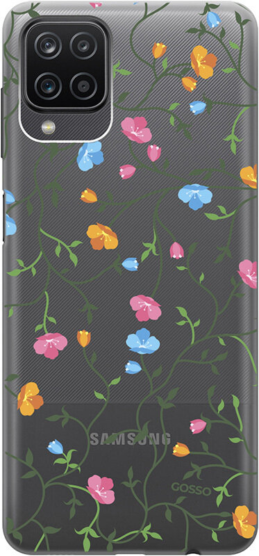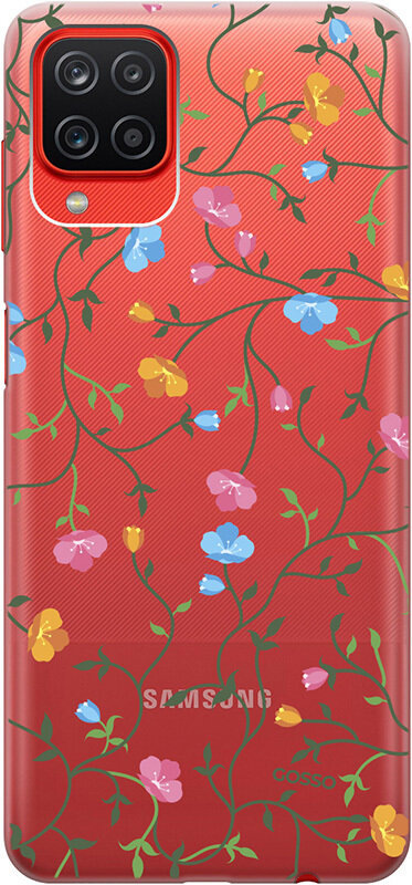 10 цен на Ультратонкий силиконовый чехол-накладка ClearView для Samsung Galaxy A12 с 3D принтом "Сurly Flowers"