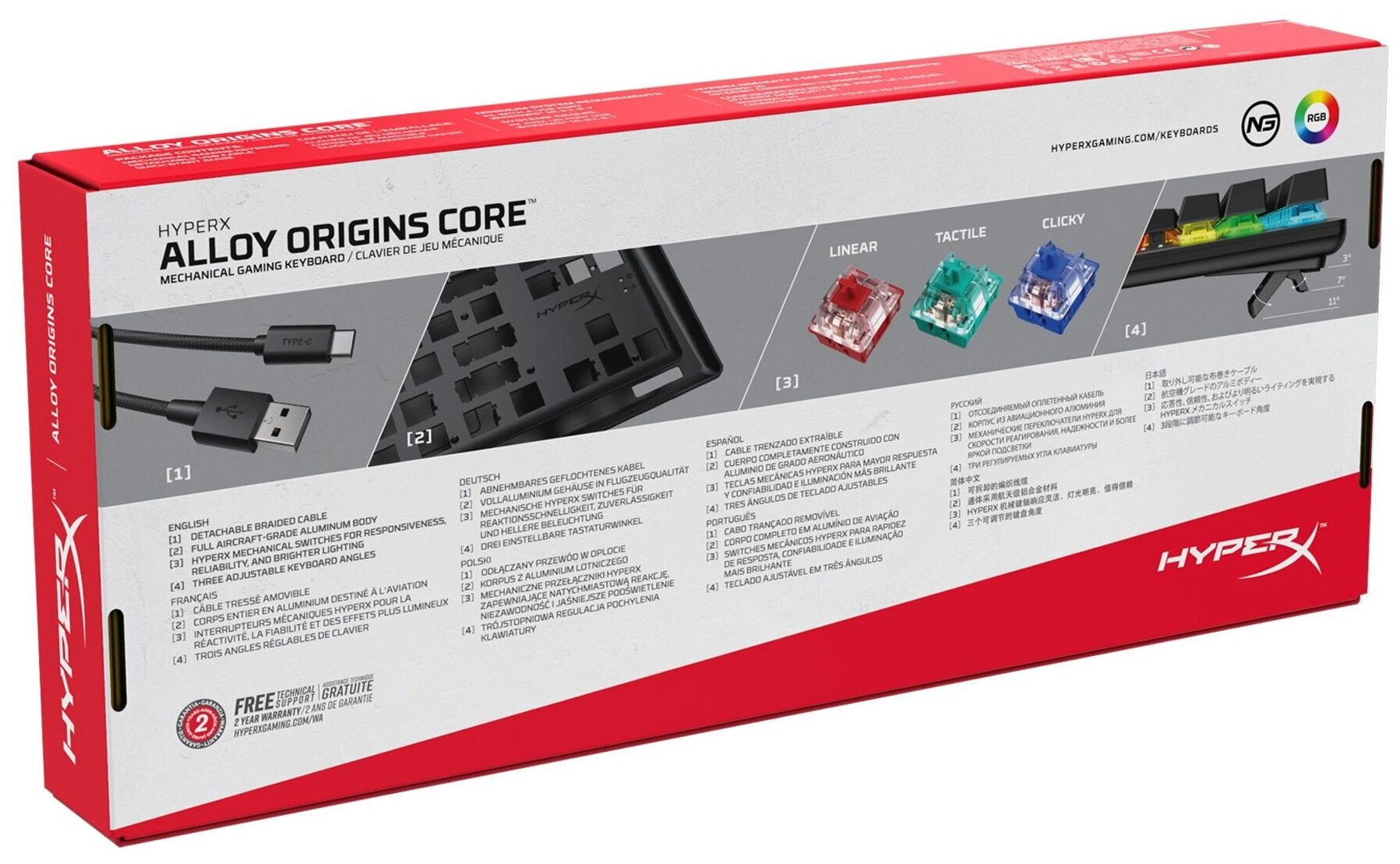 Клавиатура HyperX Alloy Origins Core (RED switches) Black USB, кириллица+QWERTY