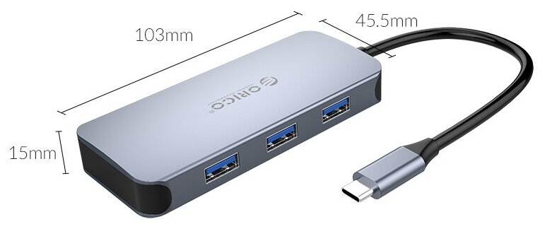 Концентратор ORICO USB-C с 2x USB-A, 1xUSB-C, 1xPD 100 Вт черный (ORICO-PAPW2AC-C3-015-BK-EP)